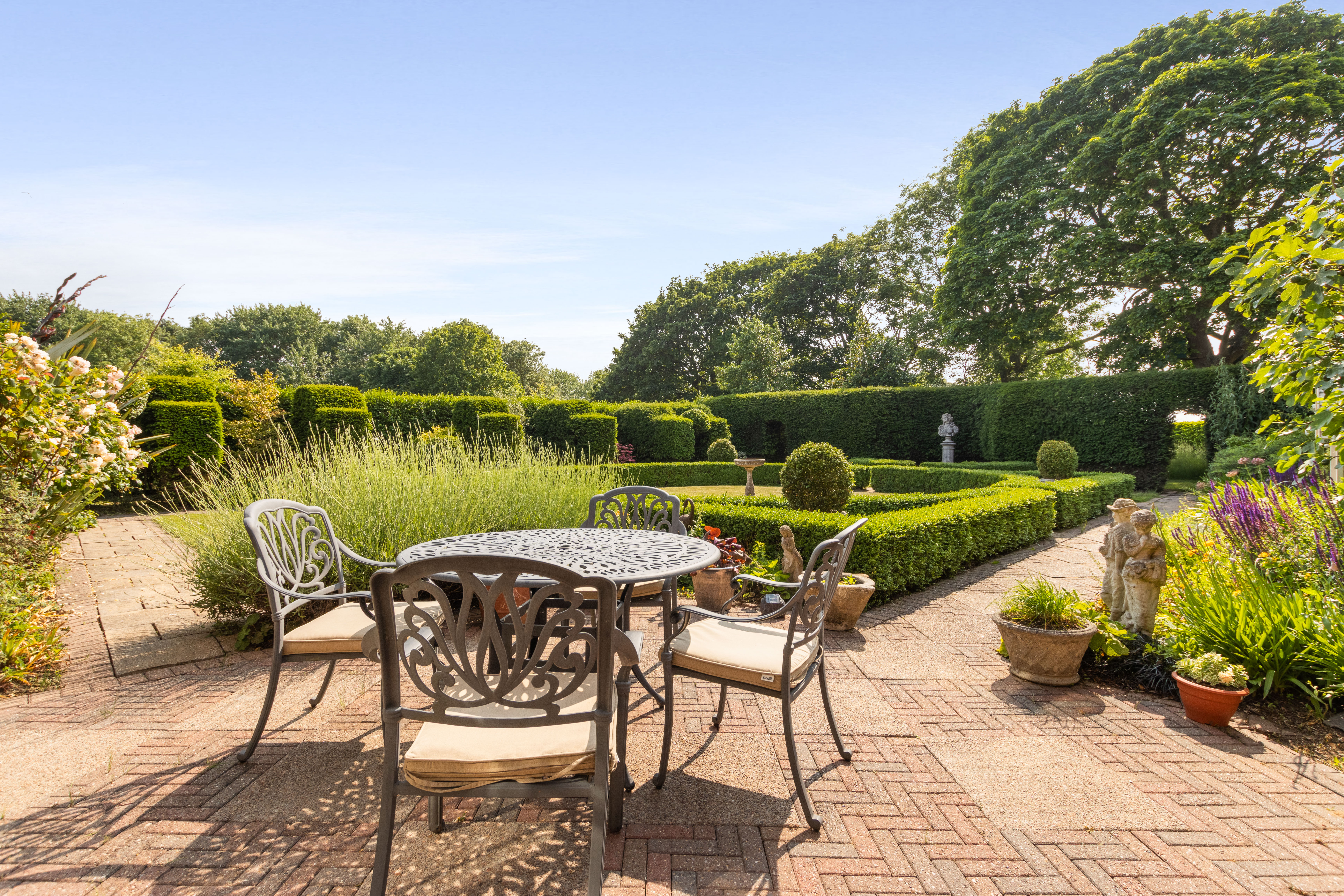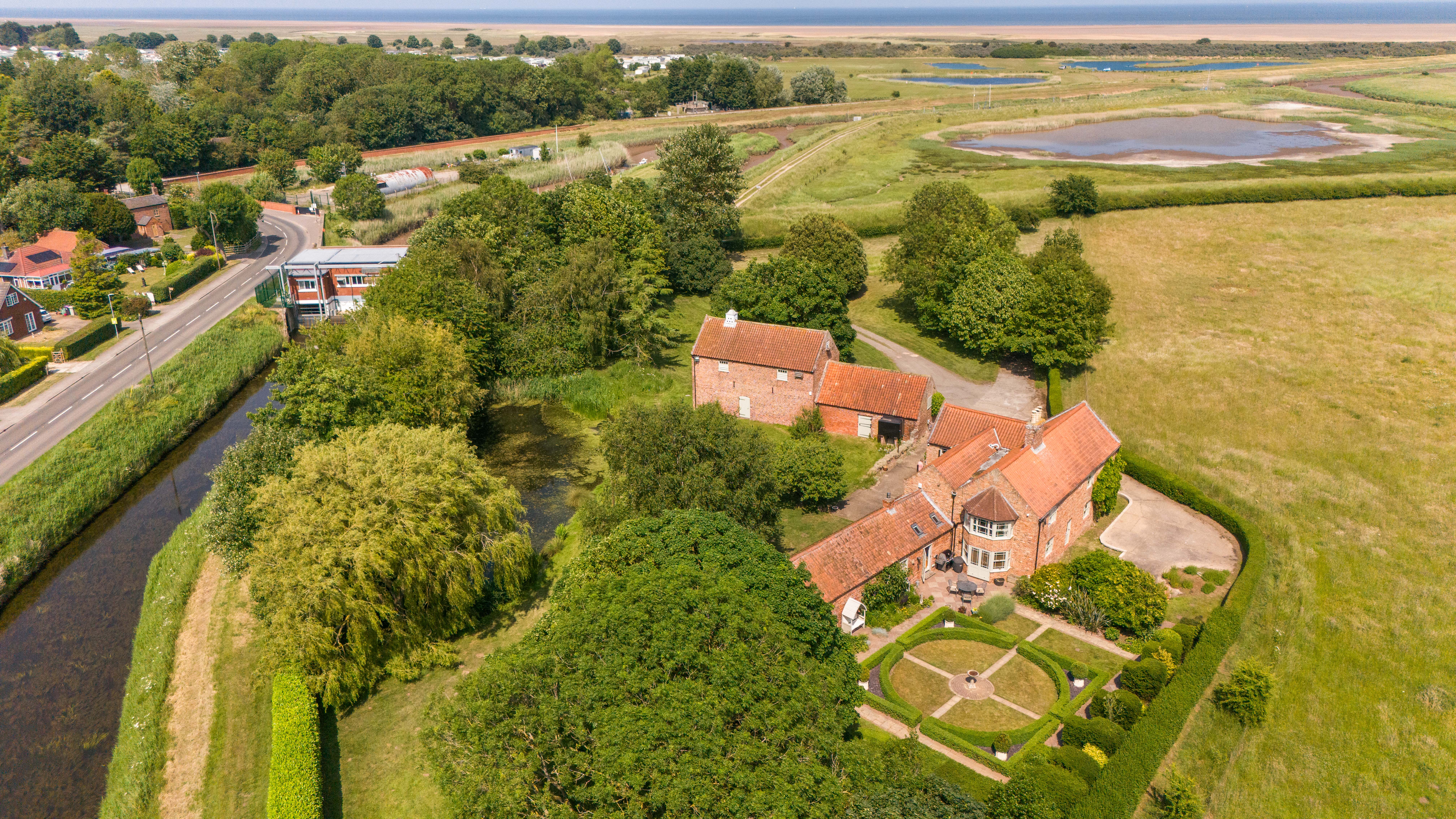 The property is positioned within attractive mature grounds which are believed to total some 1.8 acres (STS ). The property is set away from the main village road and is accessed via a private road which leads to the propertys' driveway. To the south side of the house is a delightful formal garden with box hedging, flower and shrub borders,paved footpaths, shaped lawns , hedge enclosures and a large fig tree. The remaining grounds are mostly laid to lawn and include a range of semi mature trees, large fish pond with variety of wildlife and has its own bore hole. There is a concrete and stone driveway, cold water tap, external power points and electric car charging point , a delightful mature wisteria and attractive views over a nature reserve which we are informed is in the ownership of Lincolnshire Wildlife Trust .