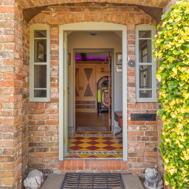 With Victorian style tiled floor, period style oak front door, sash windows and Edwardian style column radiator, ledge & brace oak inner door opening to:-