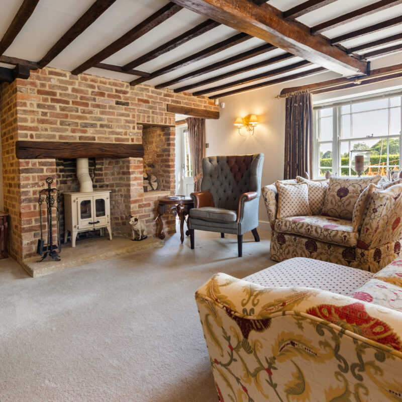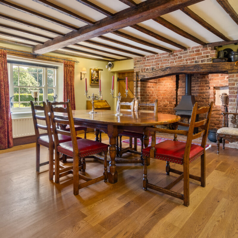A rare opportunity to acquire a beautifully restored historic detached house, thoughtfully renovated by the current owners and set within approximately 1.8 acres of mature grounds (sts). This characterful home offers an exceptional blend of period charm and modern comfort, perfectly positioned with views over a neighbouring nature reserve. A sweeping driveway leads to the main house and a remarkable grade II listed two storey barn, offering exciting potential for a variety of alternative uses, subject to any necessary local authority consents. Inside, there is a wealth of original features including exposed beams, traditional fireplaces and period detailing throughout. The spacious accommodation is arranged over two floors, ideal for family living. Externally, the grounds offer expansive lawns, mature trees, and a pond. EPC rating F.