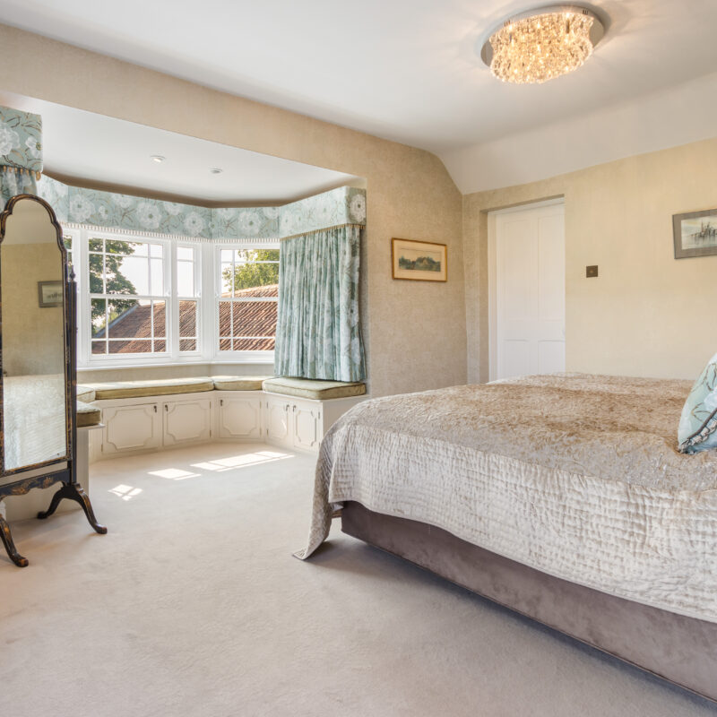 With bay window having double glazed sash windows, built in window seat and storage cupboards below, built-in wardrobes, drawers. The bedroom extends to a dressing area. Maximum measurements.16'2" x 15'5" (4.95m x 4.75m)